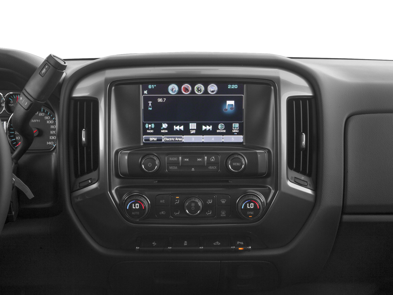• Audio system, Chevrolet MyLink Radio with 8" diagonal color touch-screen, AM/FM stereo with seek-and-scan and digital clock, includes Bluetooth® streaming audio for music and select phones; USB ports; auxiliary jack; voice-activated technology for radio and phone