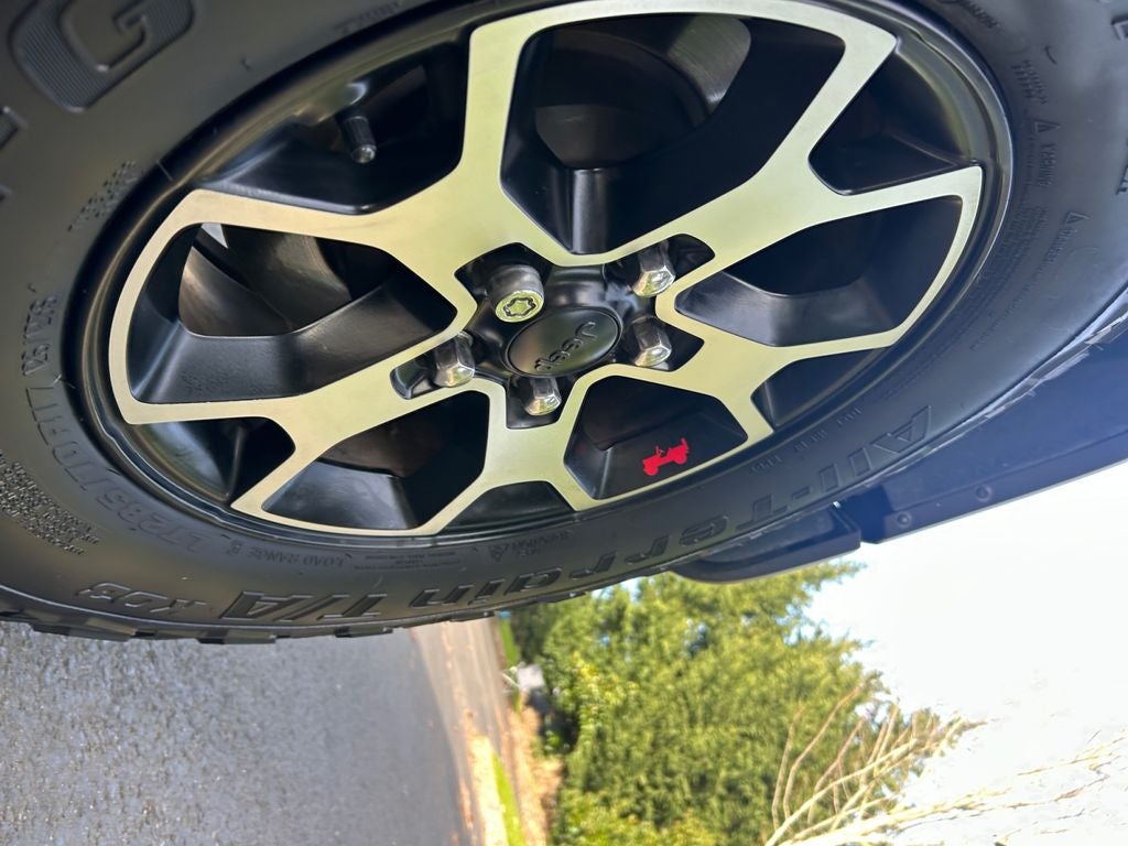 Elevate your outdoor adventures with the Wrangler Rubicon's impressive off-road capabilities. The rugged BF Goodrich tires and 17-inch machined alloy wheels with black pockets ensure exceptional grip and style. The black 3-piece hard top and freedom panel storage bag offer versatility and convenience, while the rear window wiper and defroster keep you prepared for any weather conditions.