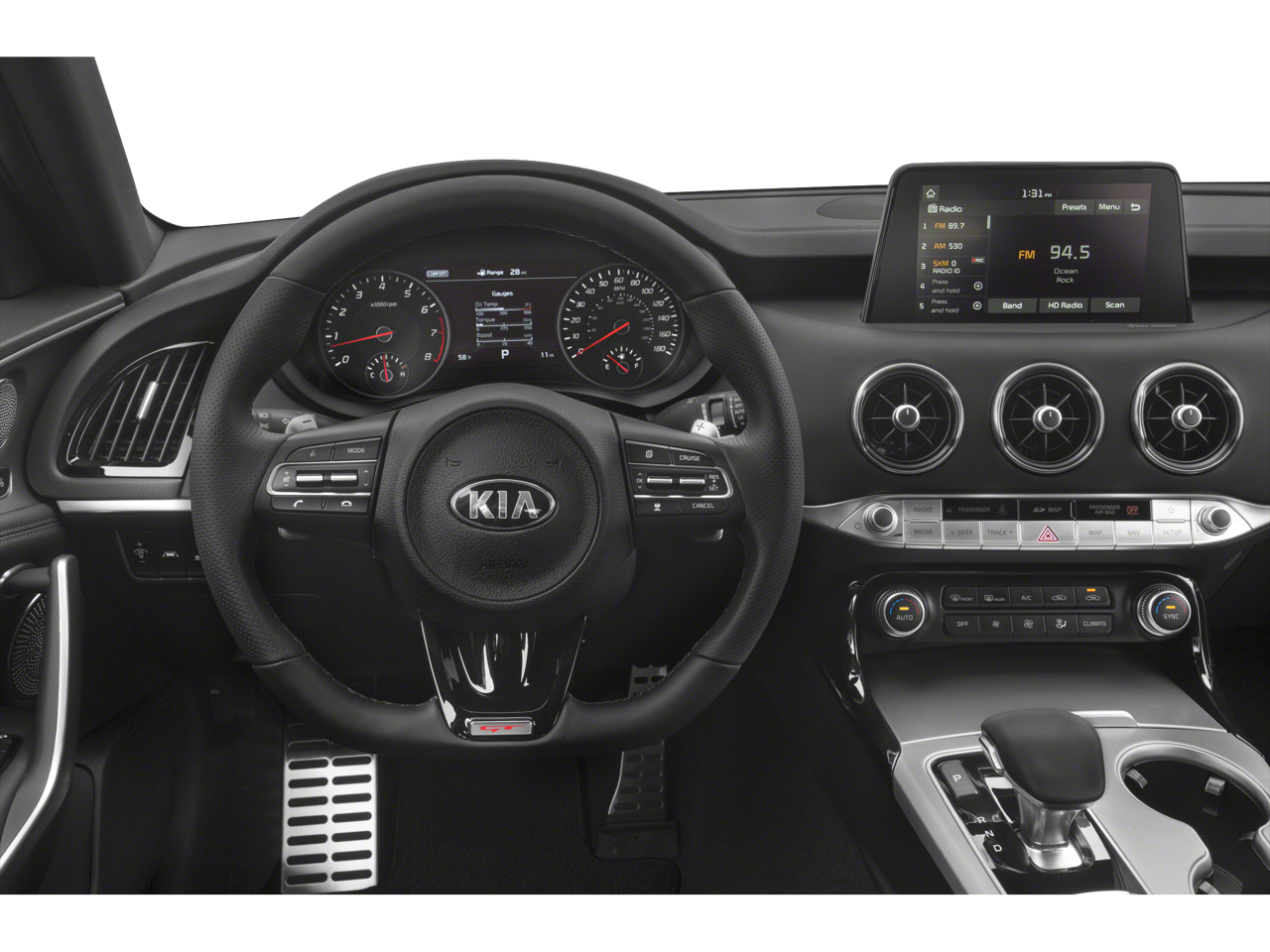 - Radio: AM/FM/MP3/HD/SiriusXM Audio System -inc: 7" color touch-screen display, 9 speakers, UVO eServices infotainment system, support for Android Auto and Apple CarPlay, USB input, Bluetooth® wireless connectivity, wireless phone charger and steering-wheel-mounted controls