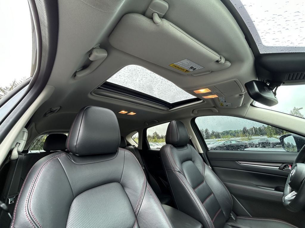 Under the hood, the 2.5L I4 turbocharged engine delivers a thrilling and responsive performance, while the 6-speed automatic transmission and all-wheel-drive system provide seamless power delivery and confident handling. With an impressive EPA-estimated 22 city/27 highway MPG, this CX-5 offers a compelling balance of power and efficiency.