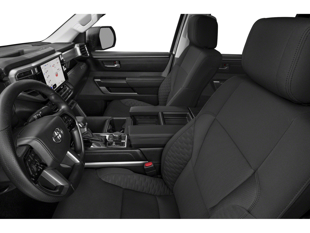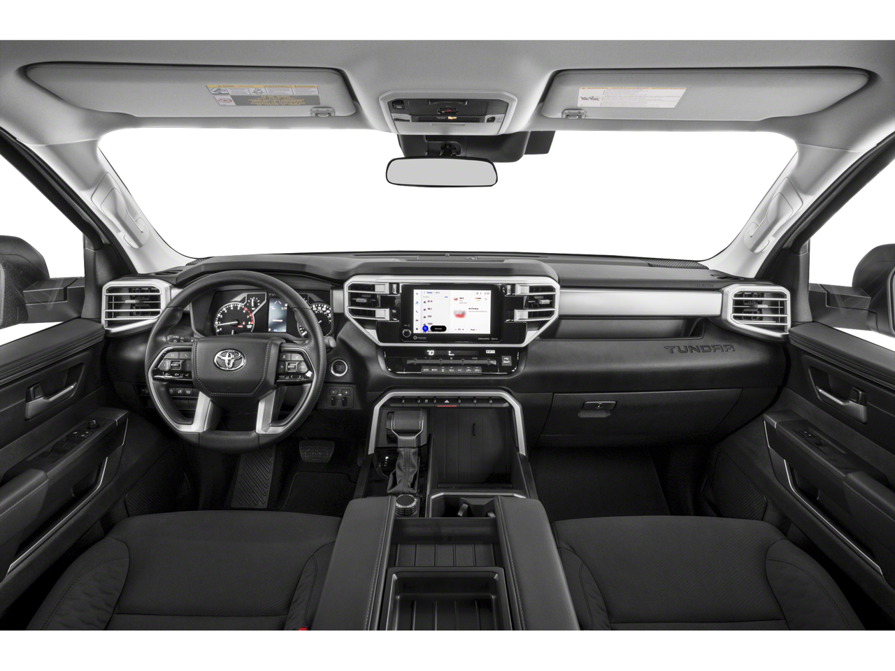 Inside, the Tundra SR5 offers a comfortable and well-appointed cabin. Premium features like heated leather-wrapped steering wheel, Apple CarPlay/Android Auto, and Blind Spot Monitor with Lane Change Assist ensure a seamless and enjoyable driving experience.