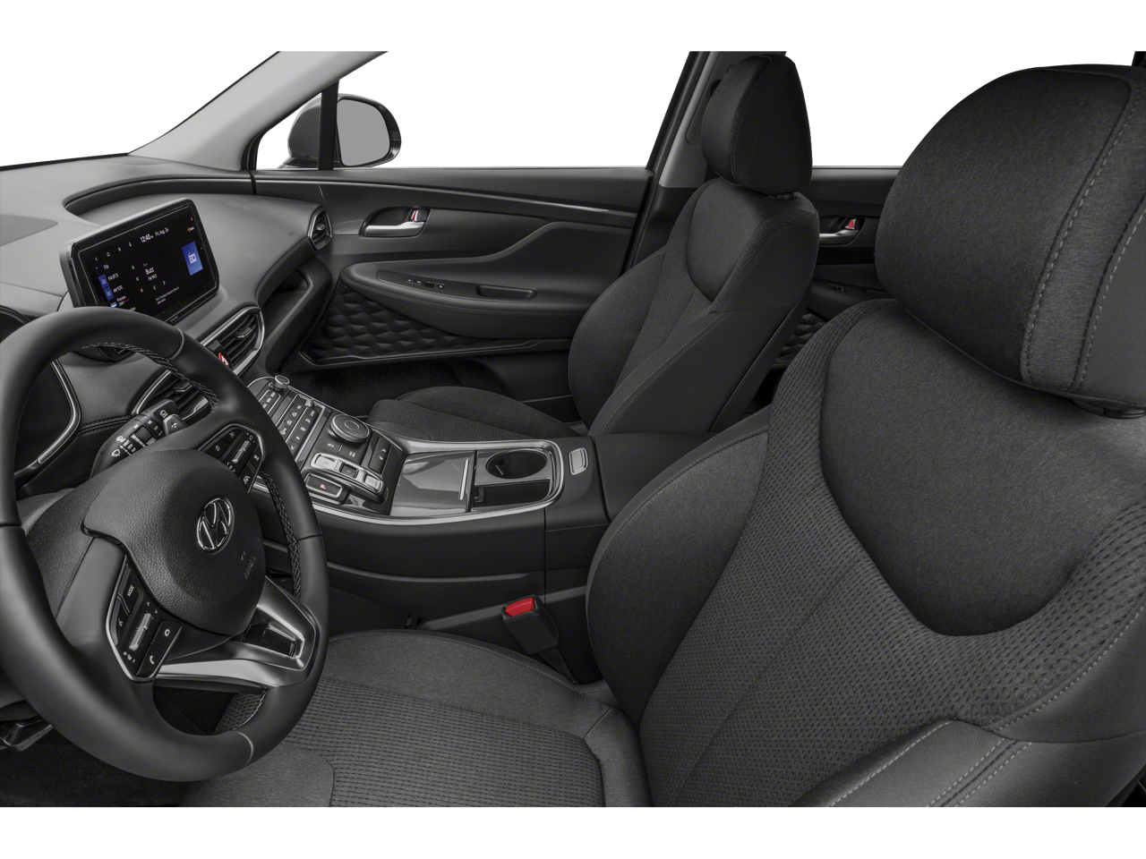 The Santa Fe's sophisticated design and attention to detail are evident in its well-appointed interior, featuring stain-resistant cloth seat trim, a leather-wrapped steering wheel, and a host of convenience features that make every journey a pleasure.